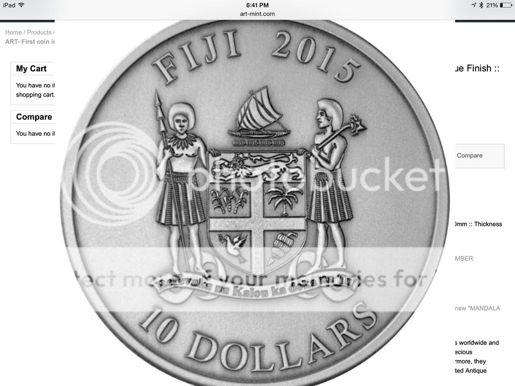 Fiji 10 Dollars 2015 Silver 999. 3oz Antique Finish :: MANDALA ART- First coin in series!