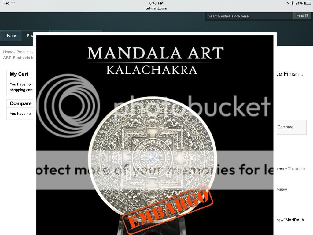 We are very proud to offer you the FIRST ISSUE of Art Mints new "MANDALA ART" coin series starting with the "Kalachakra" mandala.