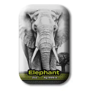 Royal Krakow Mint 2 Ounce Africa Big 5 Elephant Color Antiqued Silver Cast Bar