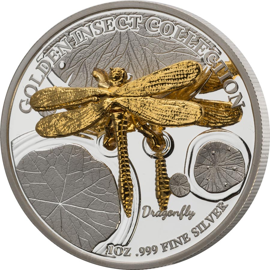 This premium 3 X 1 Ounce Silver Proof Coin set and 2nd in the Golden Insects series features another three of the most beneficial and fragile species. The featured insects, Ant, Dragonfly & Grasshopper have each been minted with life-like 3D shape technology and then further plated in 24K pure gold.